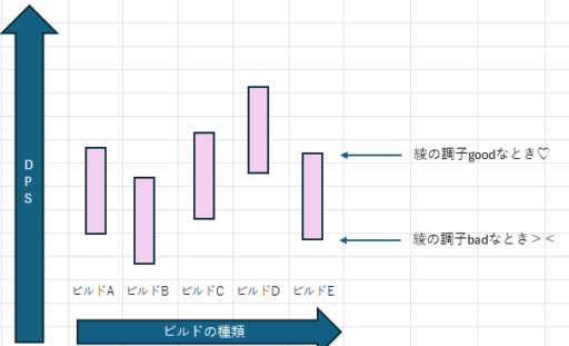 ビルドDではそのDPSはいまいちな調子だったなーって