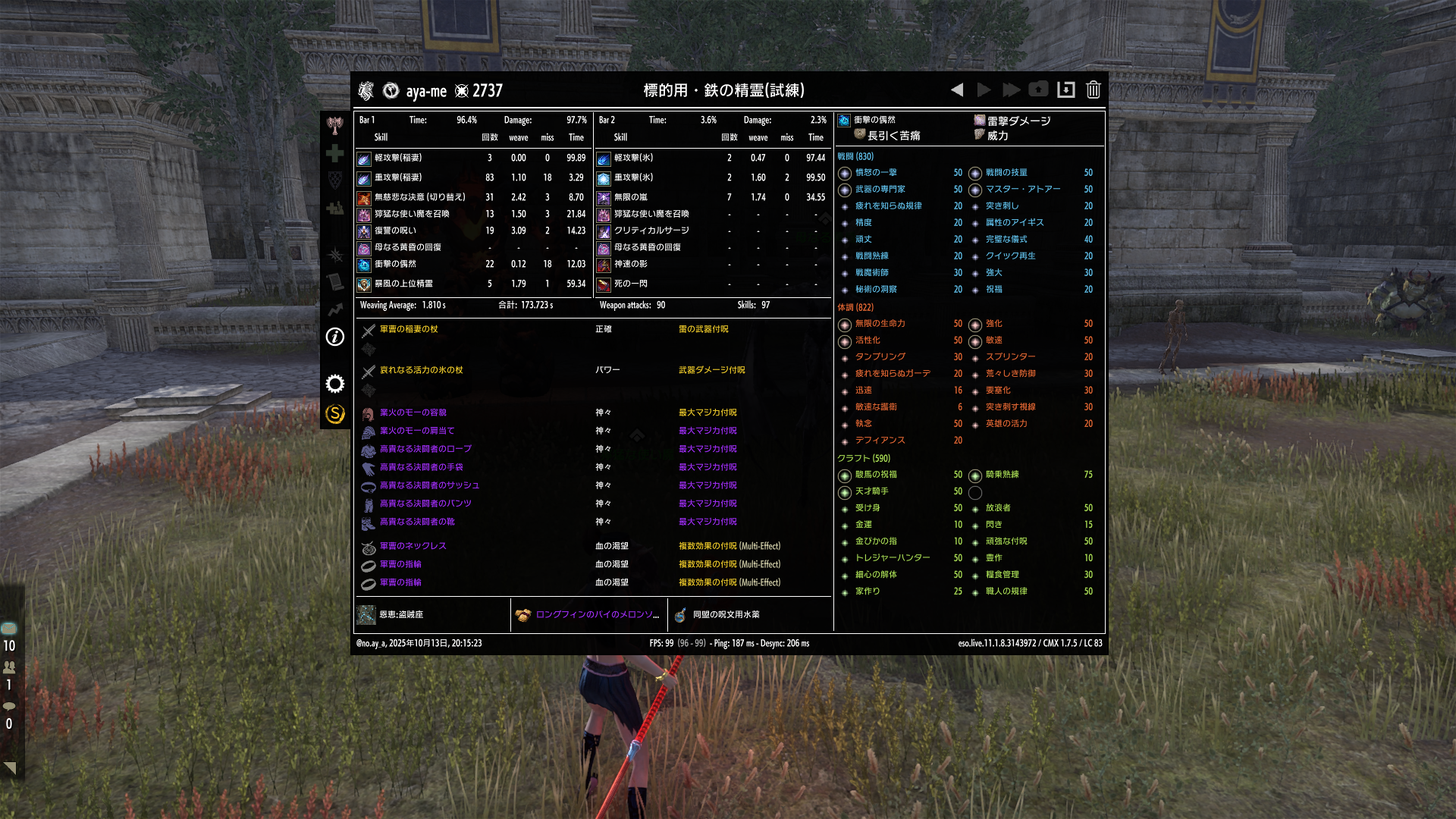 これダンジョン行き装備(ビルド)のままダミー叩いてるので
